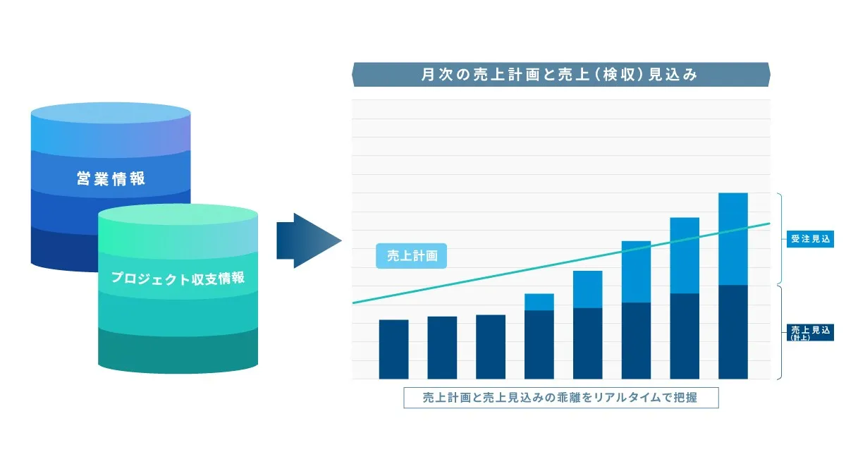 この「実現可能レベルの売上予測額」と年度の予算を比較し、新規案件獲得をどの程度追加すれば良いか、経営者は確認することができます。